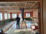 Durch Fronarbeit wurde die Zwischendecke des Kellers und des Speisesaals isoliert.
